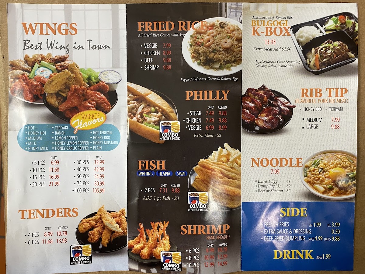 Whether you’re stopping by for a quick lunch, grabbing dinner with friends, or looking for a satisfying late-night bite, the menu suits a relaxed, informal atmosphere. The wings come in combos and individual orders, encouraging a communal dining experience where each bite can be tailored with additional seasonings to your taste.